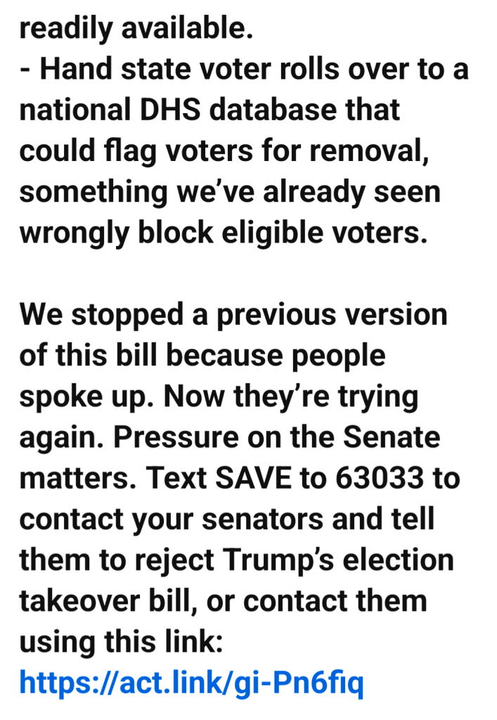There is only one purpose to this proposed legislation which will make it harder for tens of millions to vote in the upcoming midterm elections — to save MAGA. The Senate would have to change the filibuster rules to pass this Nazi bill with 54 votes. If we want to preserve our experiment in democracy, we have to keep Democratic senators honest (and good luck with some of these mf’s).