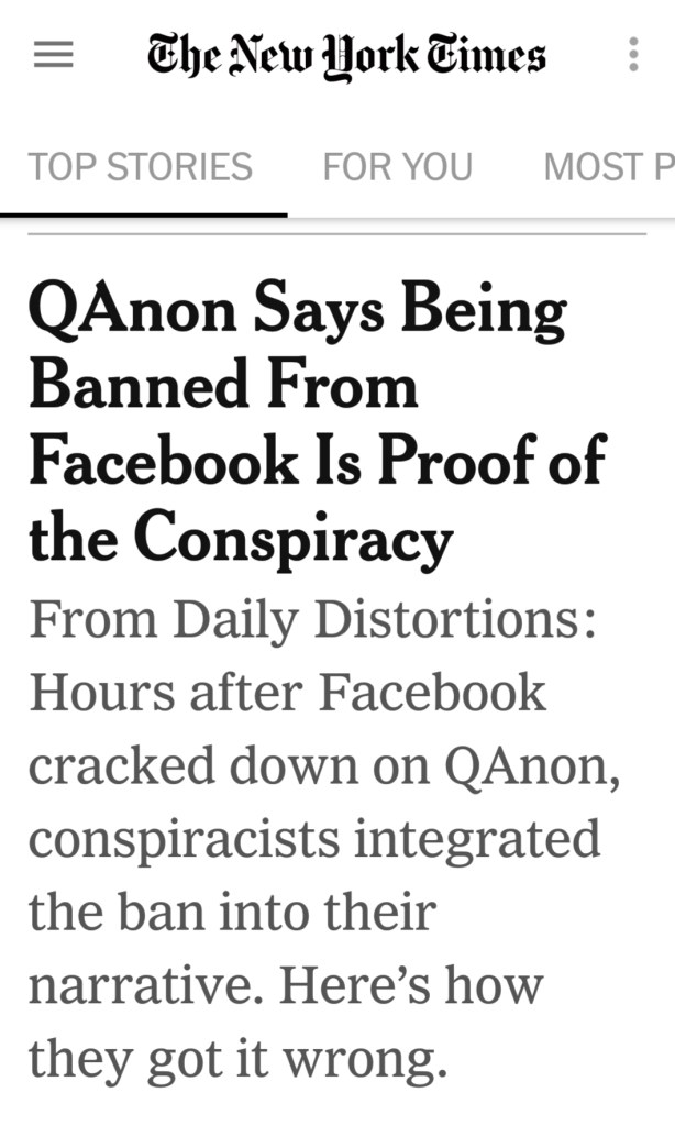 I hope you know I am being arch here. QAnon is a recycling of the old antisemitic myth about Jews who control the world and live forever by drinking the blood of Christian children. The fuckers richly deserve to be prevented from spreading this horse shit in every public forum.