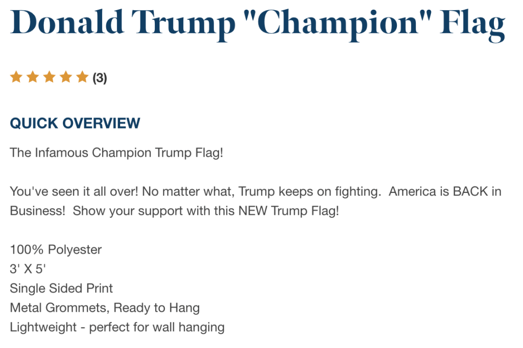 Strong! Oct19 by oinsketta Unbelievably great deal, a three foot by five foot flag, only $2.99. Also from the GOP shop (this magnet proudly made in USA) same great price as the flag above — also available in a ten pack for only $19.99: Share this: Share on X (Opens in new window) X Share on Facebook (Opens in new window) Facebook Like Loading... Related