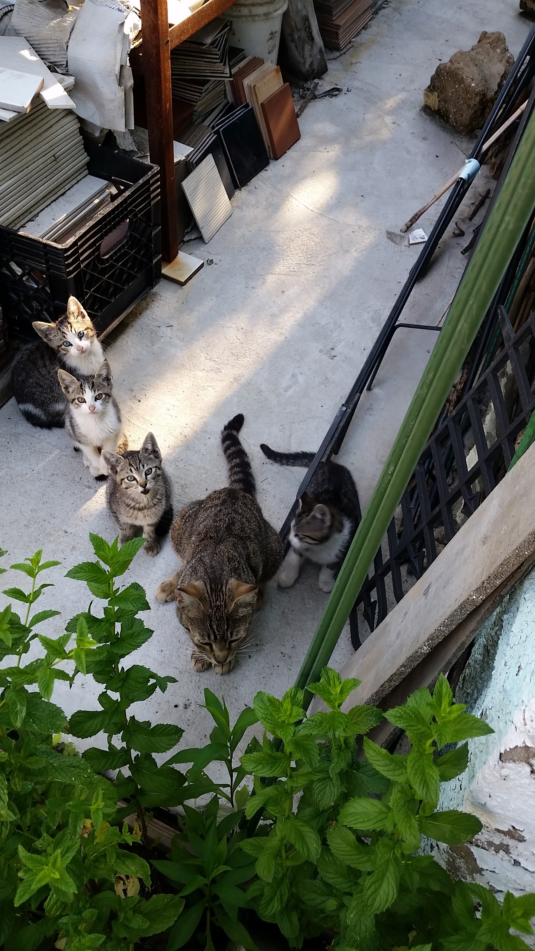 In the end, with the help of an almost insanely dedicated cat rescuer, we were able to trap Mama Kitten and the others and have them spayed, and the father (we assume) neutered as well. For a year and a half we’ve had a stable little colony in the garden. It was disrupted briefly a couple of months ago by five adorable little ferals whose mother abandoned them by the best cat buffet in the neighborhood. We managed to catch, domesticate and find homes for all five.