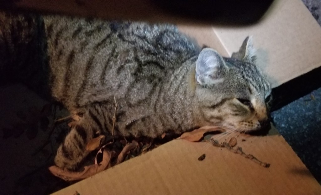 A day or two later a friend noticed one of Mama’s eyes looked a little funny. A few days later she lost interest in food, even the favorites Sekhnet brought to her. She took to one of the houses we made, staying warm. Then, one rainy, miserable night a couple of days ago she disappeared. Little Girl was now sleeping in her house.