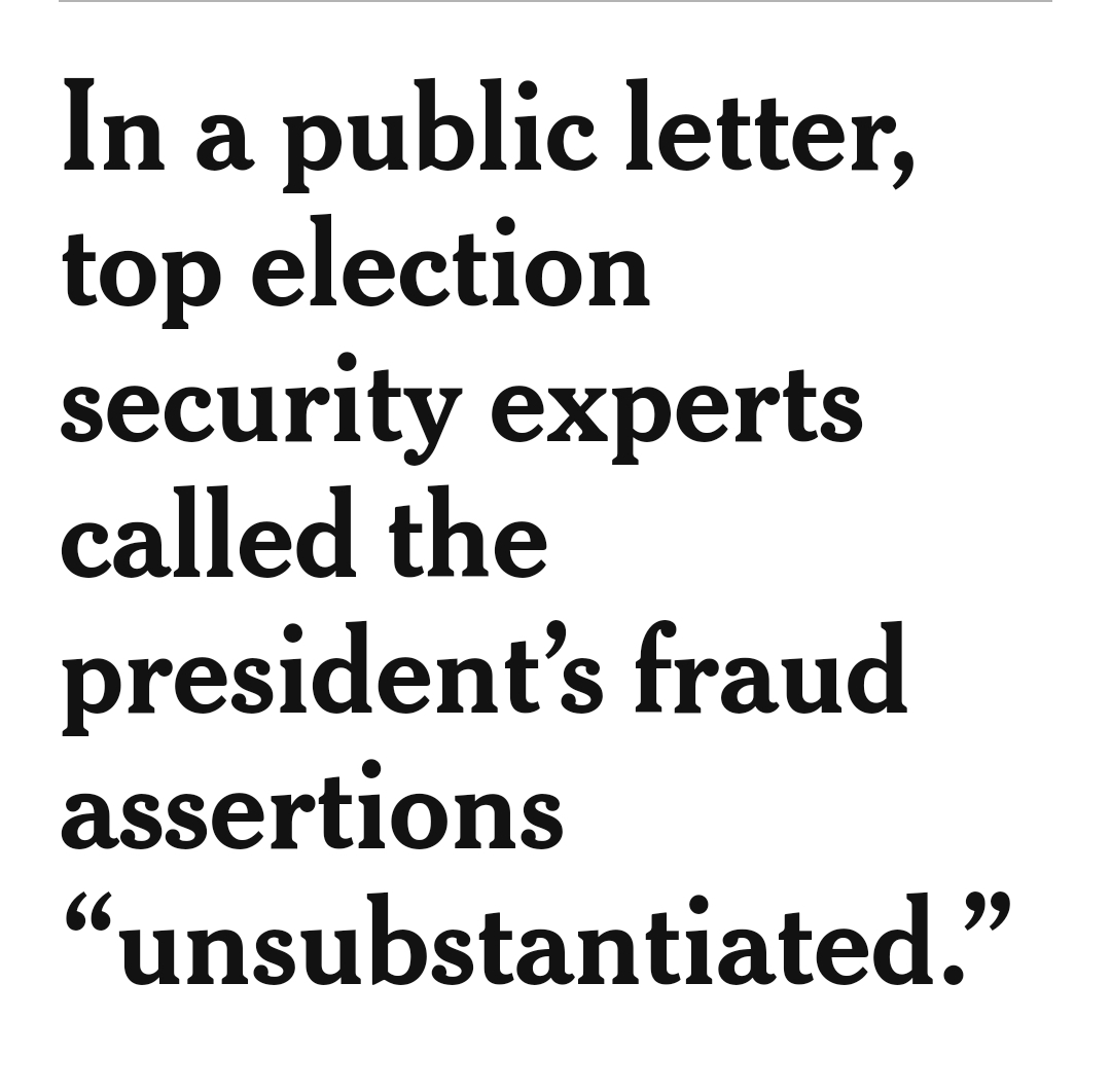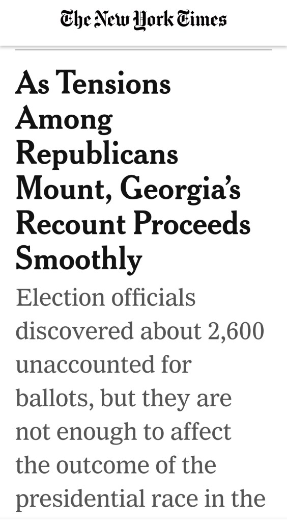 The “Times” makes it seem as if the Republican Secretary of State of Georgia is being pressured by his own party to resign, or to throw out the fraudulent signature-mismatched votes that gave Biden the stolen, rigged election in Georgia. Well, he is being pressured, sure, OK, that’s just hardball party politics, but it’s not like he’s getting death threats, though, naturally, he reports he is. Which, of course, he would. He’s clearly in on the Biden scam! Another traitor!