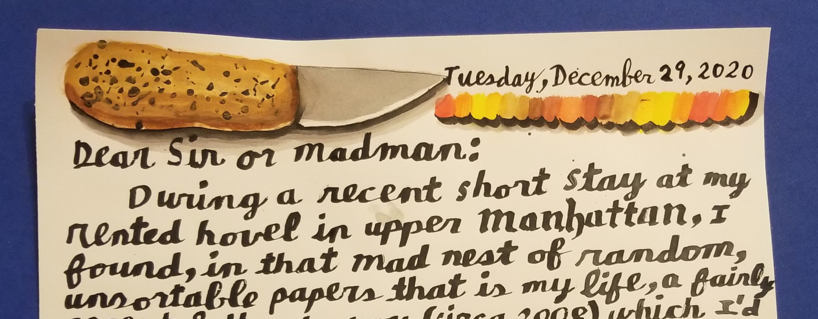 Odd to say, during this Democrat hoax pandemic lockdown (fueled by pent up rage against the election and re-election of our greatest president) I’ve been doing virtually no drawing. Neither have I been working on perfecting prissy handwriting, both very unusual for me. Few things are more delightful to me than drawing ink, or color, across a blank page.