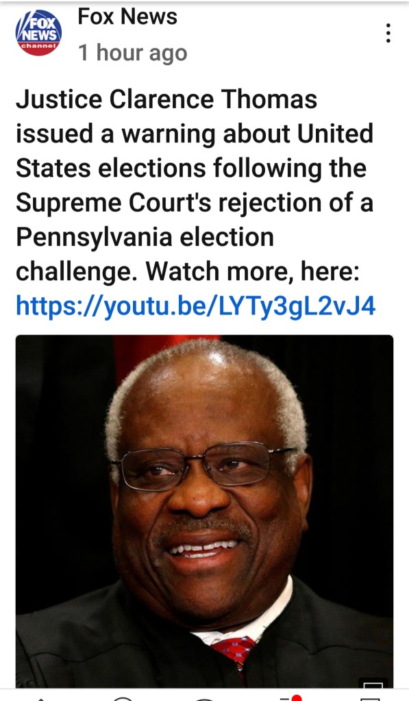 His warning to his fellow justices, who recently declined to hear appeals of several baseless Trump/RNC hypothetical voting fraud cases, presumably was that since the Supreme Court failed to act there will be millions of votes cast by angry Black people intent on making his side, electorally, the minority party that it is. They will vote by mail, they will march from churches to cast early ballots on Sunday, they will go door to door and organize to bring out a tidal wave of first time voters and even the most surgical GOP gerrymandering in the world, and the strictest voter suppression laws (GOP lawmakers in 43 states have already proposed more than 250 in the first 56 days of 2021) may not prevent majoritarian hoards from voting out Trump loyalist candidates who serve the greater good that Thomas views as the true America. An American meritocracy of color-blind rugged individualism, a nation where a long history of racism has no bearing on the current opportunities for, or grievances of, those long persecuted.