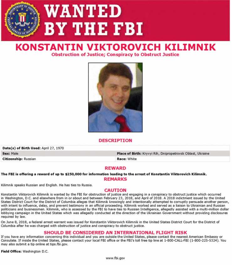 Kilimnik was mentioned hundreds of times in the bipartisan Senate Intelligence Committee report about massive Russian interference in the 2016 election that came out in five volumes, the last of them well after Mueller’s discarded work was done. The Republican led committee documented meetings and constant communications between then Trump campaign manager Paul Manafort (Roger Stone’s former partner in political dirty tricks) and Kilimnik, the man the FBI is now seeking for Obstruction of Justice and Conspiracy to Obstruct Justice. They documented how Manafort had shared detailed polling data with Kilimnik, information that might have come into play when Trump’s surgically precise Electoral College victory was engineered. Though he lost he popular vote, he won every district he needed to win for his 78,000 vote Electoral College mandate.