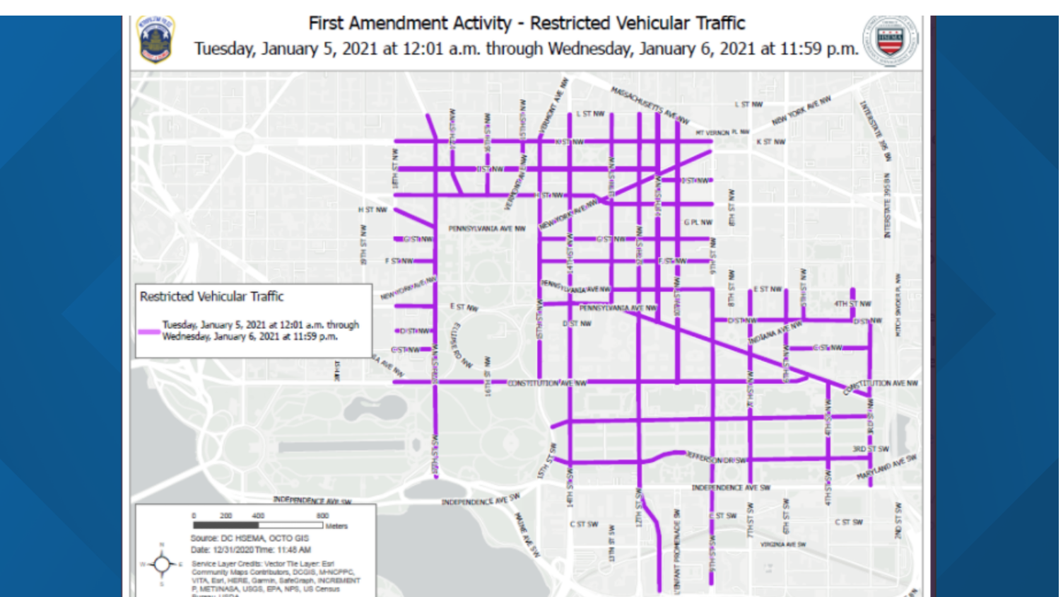 Restricted vehicular traffic only allowed in the First Amendment Activity Zone for the January 6 ‘March for Trump’ rally