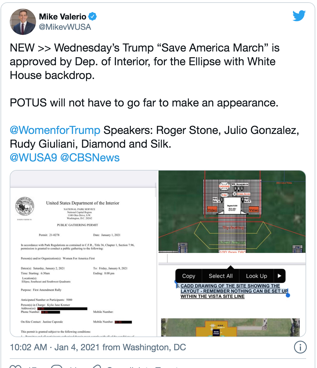 We kept hearing about the permit that Women for American Autocracy obtained for the march to the Capitol, making it perfectly legal. Here are a few details for the January 6 Commission to look into: