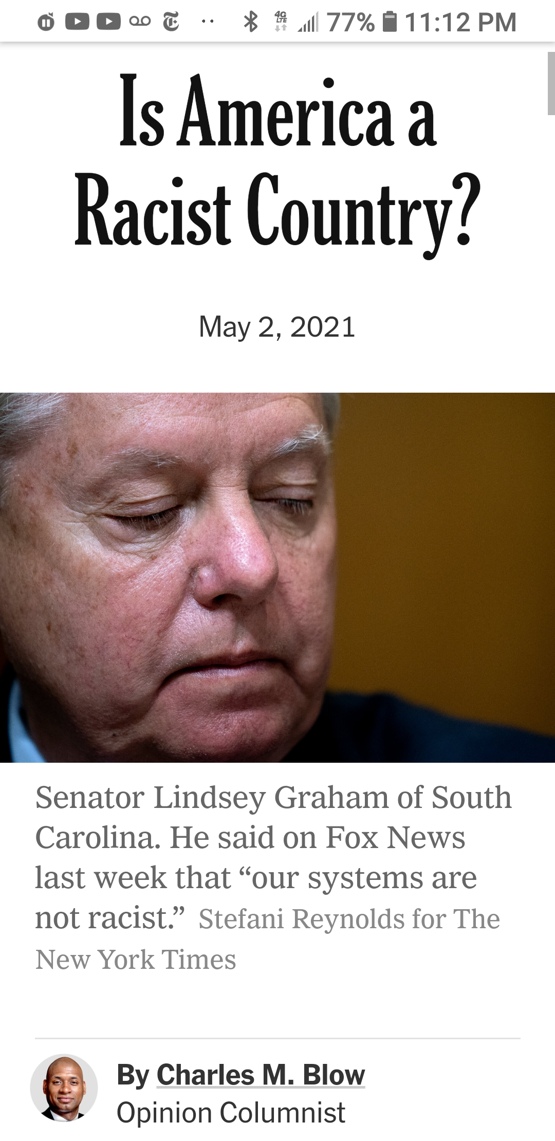 Last Sunday, Senator Lindsey Graham of South Carolina added himself to the long list of Republicans who have denied the existence of systemic racism in this country. Graham said on “Fox News Sunday” that “our systems are not racist. America’s not a racist country.”