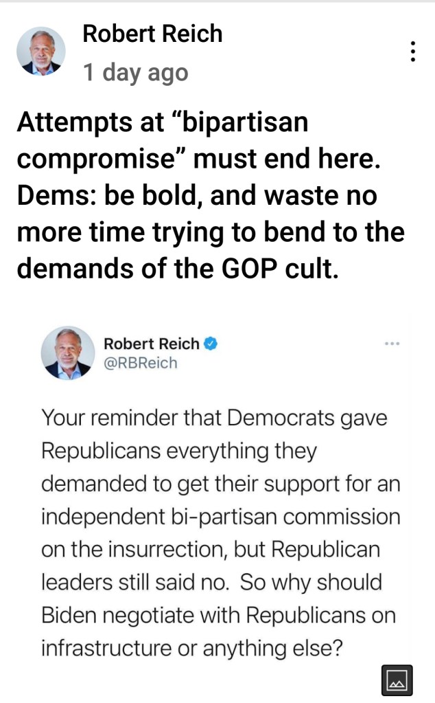 Make those two changes to the filibuster rule and it’s game over for Mitch, Lindsey, Lyin’ Ted, Hawley, Ron Johnson from Wisconsin and their Big Lie embracing ilk. There is no merit to their positions on anything in the debate over voting rights, the violence of American policing, investigating the January 6 Trump riot, raising the minimum wage, doing everything that can be done to avoid climate catastrophe.