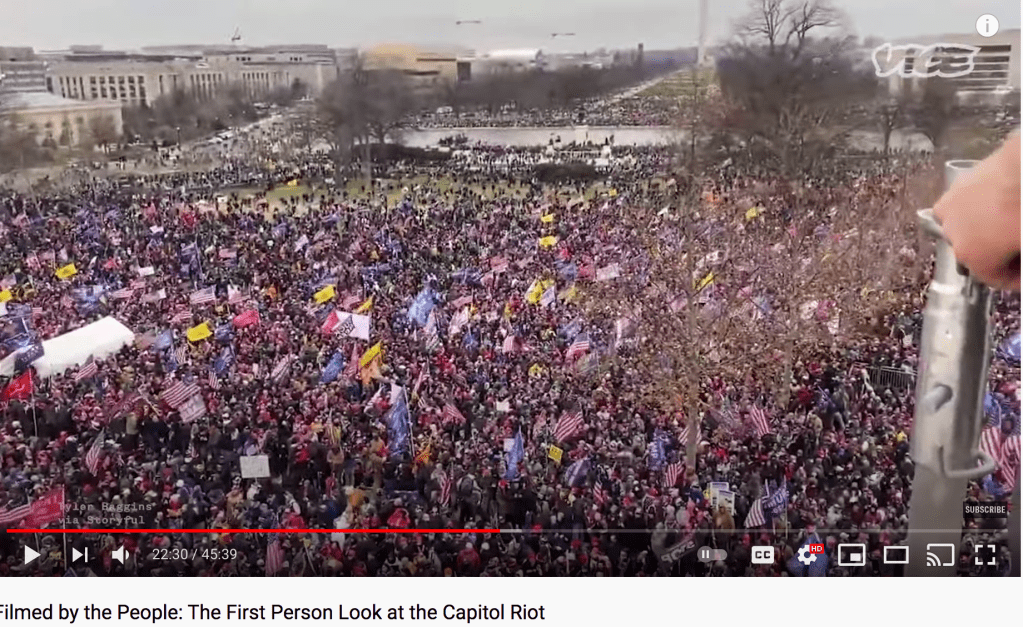 (back to me) These facts are not in dispute. The “normal tourists” who forced GOP elected officials to flee for their lives and barricade themselves in safe rooms while these normal tourist crowds, after smashing their way into the tourist attraction, roamed the halls chanting “hang Mike Pence” and calling for “Nancy” to come out and face the music, had been whipped up by Trump and the most extreme members of his remaining extremist support group. Like this guy: