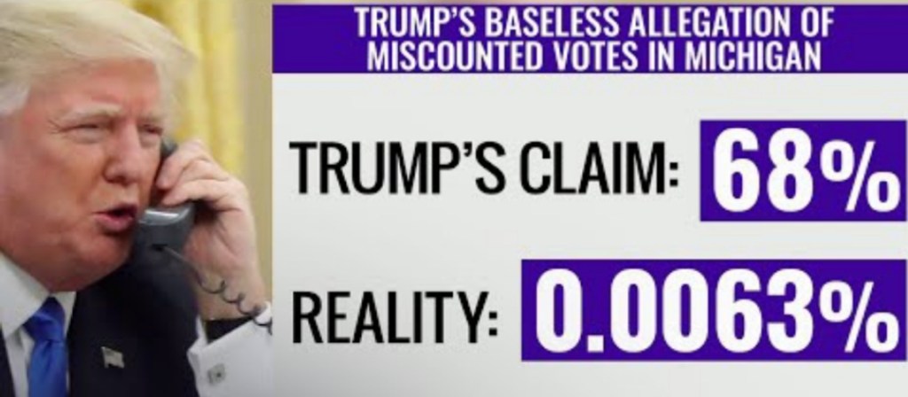 The “incriminating” notes, taken by the acting assistant deputy to then brand new interim-acting AG Jeffrey Rosen, show Rosen again informing Trump that there was no evidence of a rigged, corrupt or stolen election. The conversation took place on December 27, shortly after Barr left and ten days before the January 6 MAGA riot. Rosen corrected Trump’s false and mistaken claims. When Trump claimed there was a 68% miscounted vote/fraud rate in Michigan, Rosen corrected his number, it was actually a 0.0063% miscount rate, Sir, less than one hundredth of a percent. A small math error, fortuitously in his own favor, Trump’s rate was more than 10,000 times more than the actual rate. Anybody can get confused by decimals.