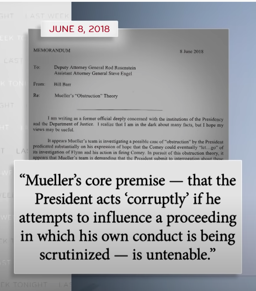 So, of course, it’s undeniable, in this frame, that nothing Mueller finds could ever actually be valid. If Mueller’s core premise is untenable, unsupportable, cannot withstand scrutiny, logic or legal analysis, anything he finds, no matter how seemingly damning, unethical, corrupt, illegal or whatever, is immaterial (another Barr fave framing term) because his core principle — that a corrupt president may not obstruct justice by interfering in an investigation into his actions — is “untenable“.