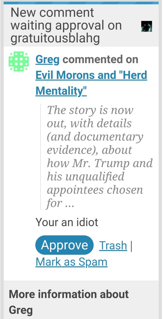 Incisive critique Oct24 by oinsketta Evil Morons and “Herd Mentality” / Share this: Click to share on X (Opens in new window) X Click to share on Facebook (Opens in new window) Facebook Like Loading... Related