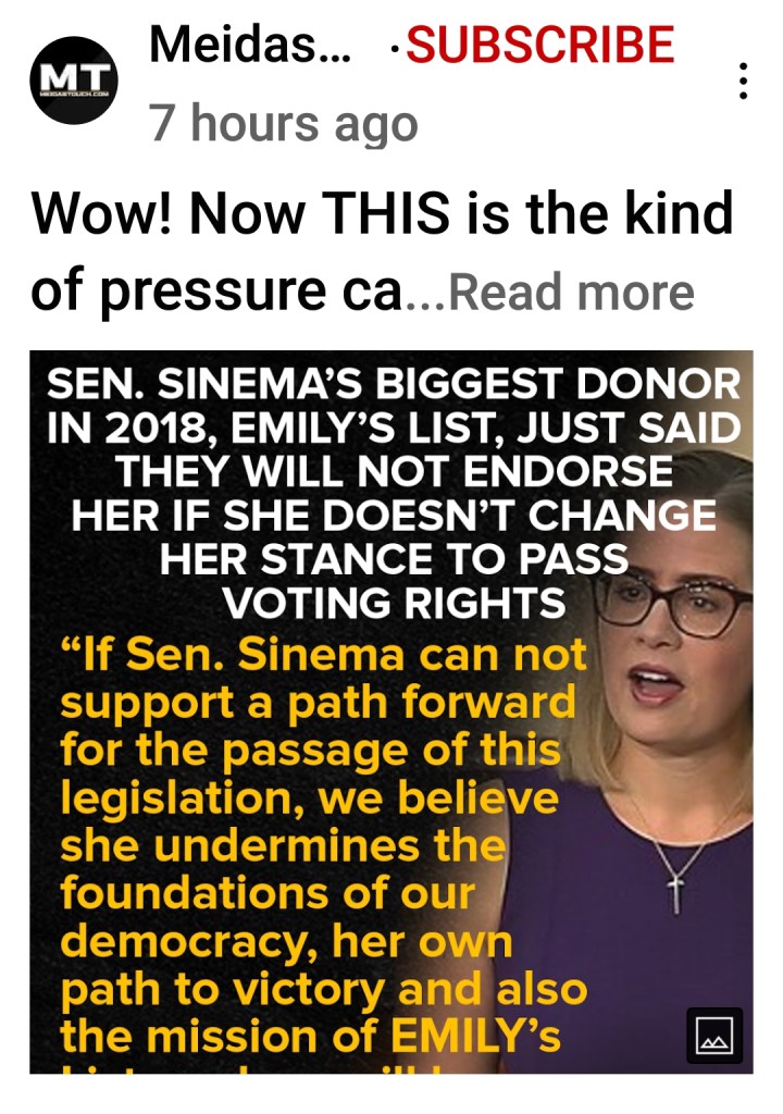 We’ll see, though it’s doubtful the lobbyists she works for will stand for this kind of pressure by some opinionated online business named Emily’s List. The checks have probably already been deposited into Sinema’s war chest. At the same time, this is a good move. You go, Emily!