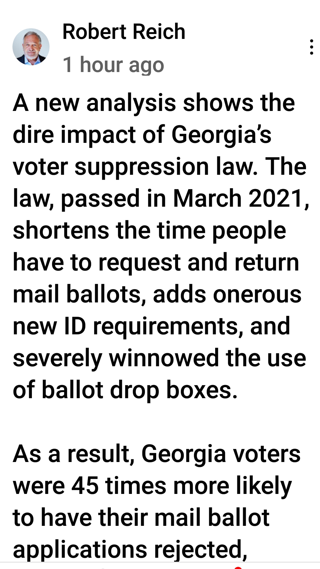 Here is a piece about how well Georgia’s new voter integrity/voter suppression law has been working so far (pardon the format, fucking YouTube wouldn’t let me copy or share it any other way…)