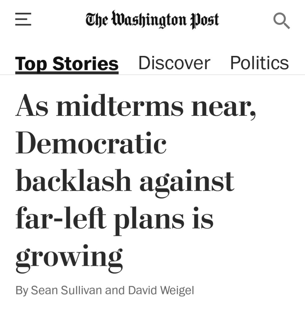 Plays right into the narrative, Americans want the “center” and those who endorse programs that bring children out of poverty (thanks to Manchinema four million young beneficiaries of the Child Tax Credit immediately returned to poverty when they blocked the Democratic Build Back Better bill) and fund long overdue measures to protect us all from devastating climate catastrophe — those are far LEFT ideas that, according to the moderate centrist narrative (both Manchin and Synema — “moderate centrists”), a radical minority is trying to ram down our throats, a la Amy Coney Barrett. OK, fine, Jeff Bezos owns the newspaper, after all.