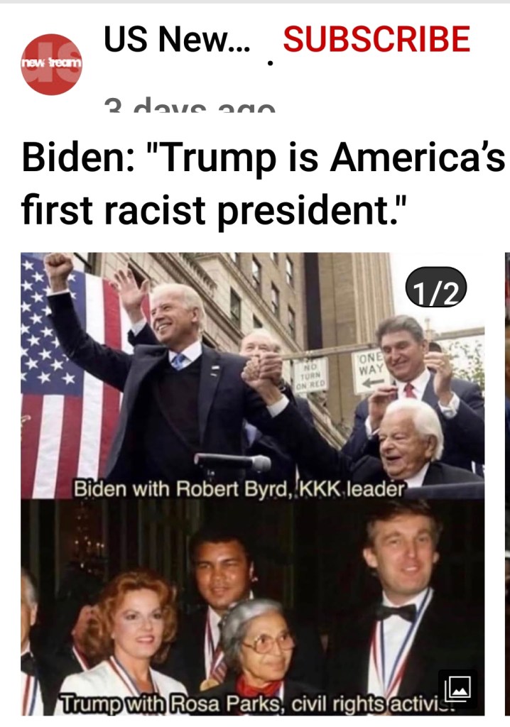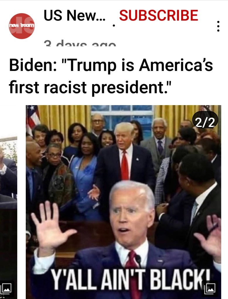 It strikes me as highly unlikely that Biden ever foolishly claimed that Trump, though openly racist, was our first racist president. Most of the early presidents were slaveholders, more than one more recent president was in open sympathy with the Ku Klux Klan. Biden surely knows this, but why let the fact that he never said it stand in the way of making a hateful meme about him? It’s all about owning him, like Thomas Jefferson owned Sally Hemings.