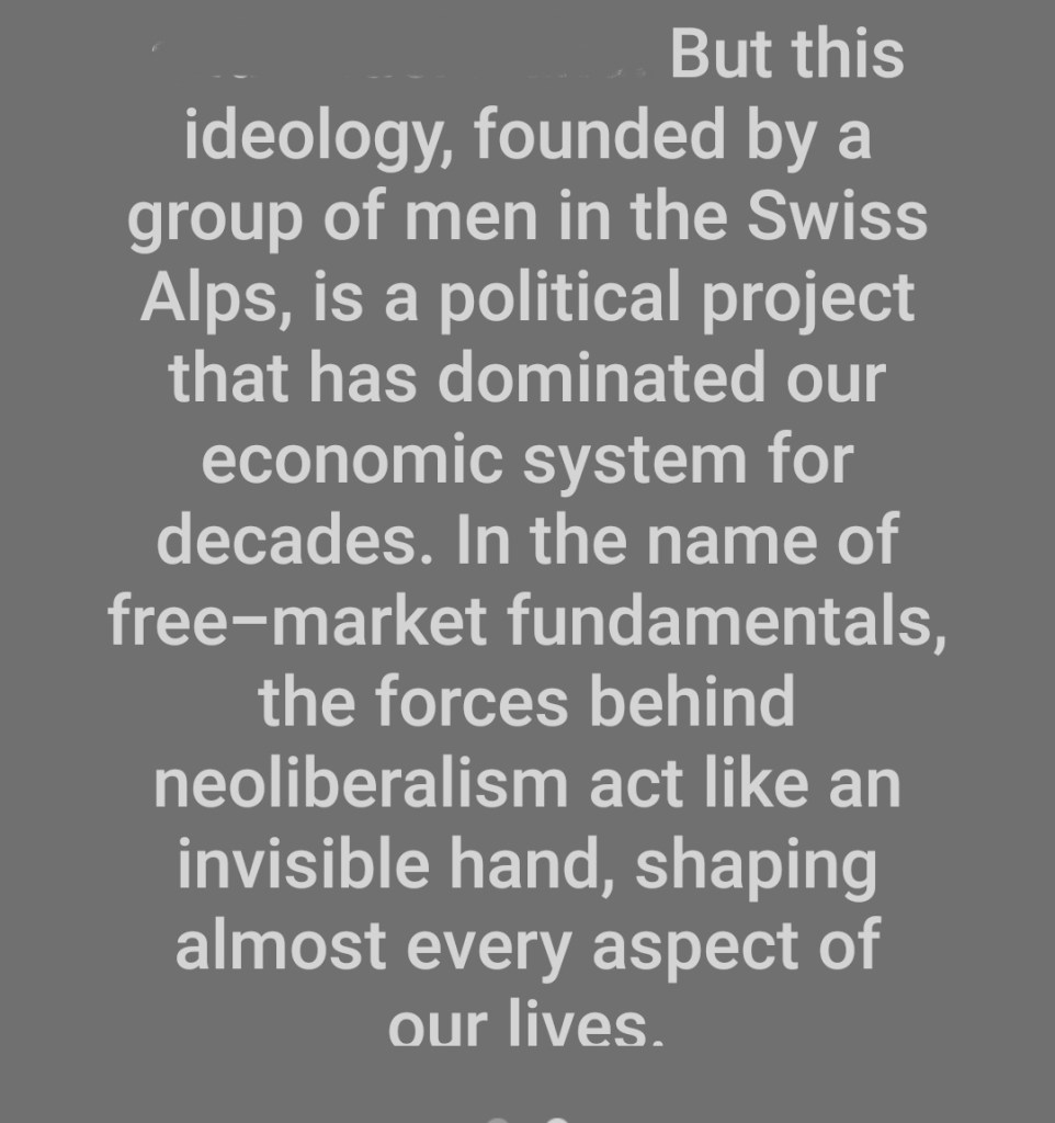 Here is a great primer on the once fringe economic and political theory called neoliberalism. It is a wild variation on the old laissez-faire philosophy of capitalism, based on the well-worn theory that the Invisible Hand of the Free Market is wiser, more fair and infinitely more flexible than any government regulation could ever be. Neoliberalism has done as much as any political force to bring the world to the brink of global authoritarianism. This podcast does a great job laying neoliberalism out clearly.