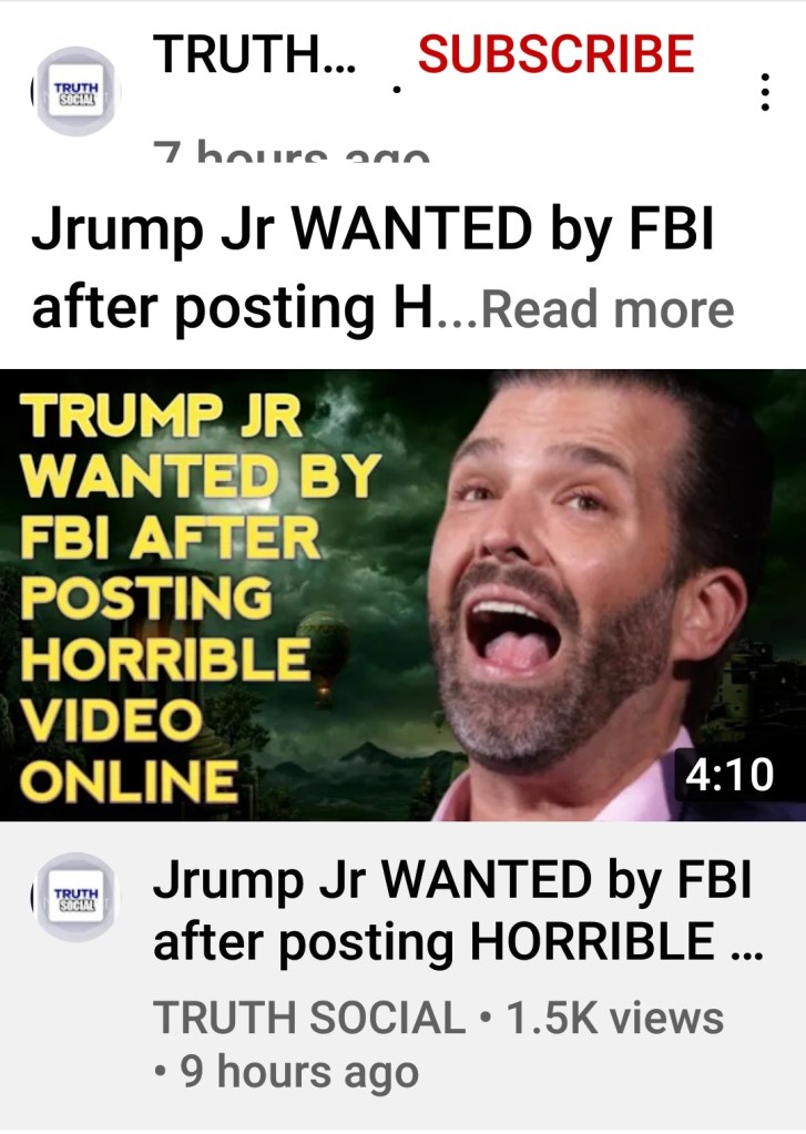 These gracked me up May7 by oinsketta Especially because of the YouTube channel they’re on, TRUTH SOCIAL. TRUTH SOCIAL. Share this: Share on X (Opens in new window) X Share on Facebook (Opens in new window) Facebook Like Loading... Related