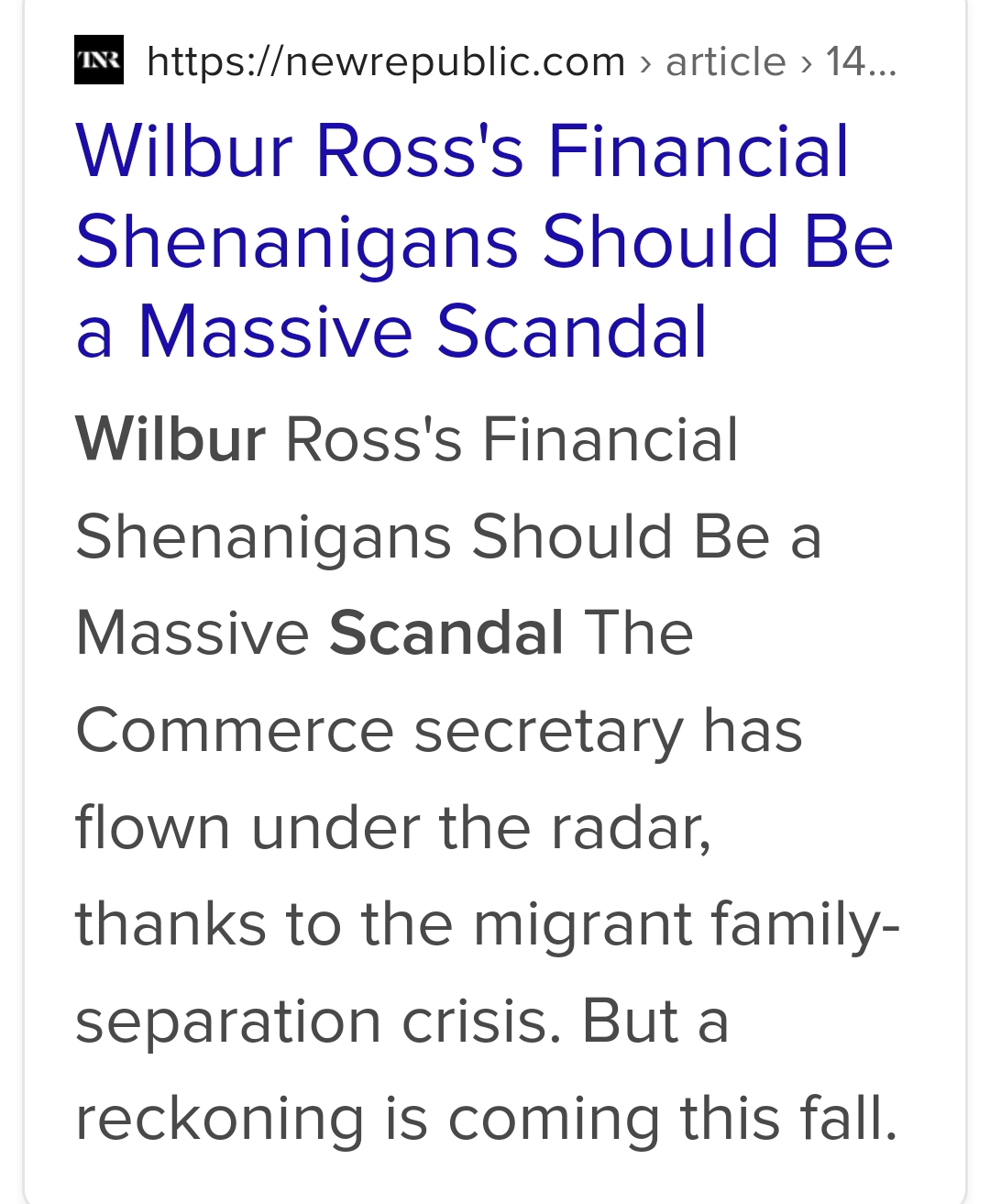 Almost exactly a year ago the DOJ declined to prosecute Wilbur Ross despite a watchdog finding that he made misrepresentations to Congress about adding census citizenship questions. His real purpose in adding that question, of course, which they fought all the way up to the Supreme Court, naturally, was to intimidate minorities from answering the census to reapportion money and political representation (House seats) away from minorities and integrated urban areas and toward white, rural, faithful Republican voting areas. As you do, when you have discretion to abuse and you work for an autocrat.