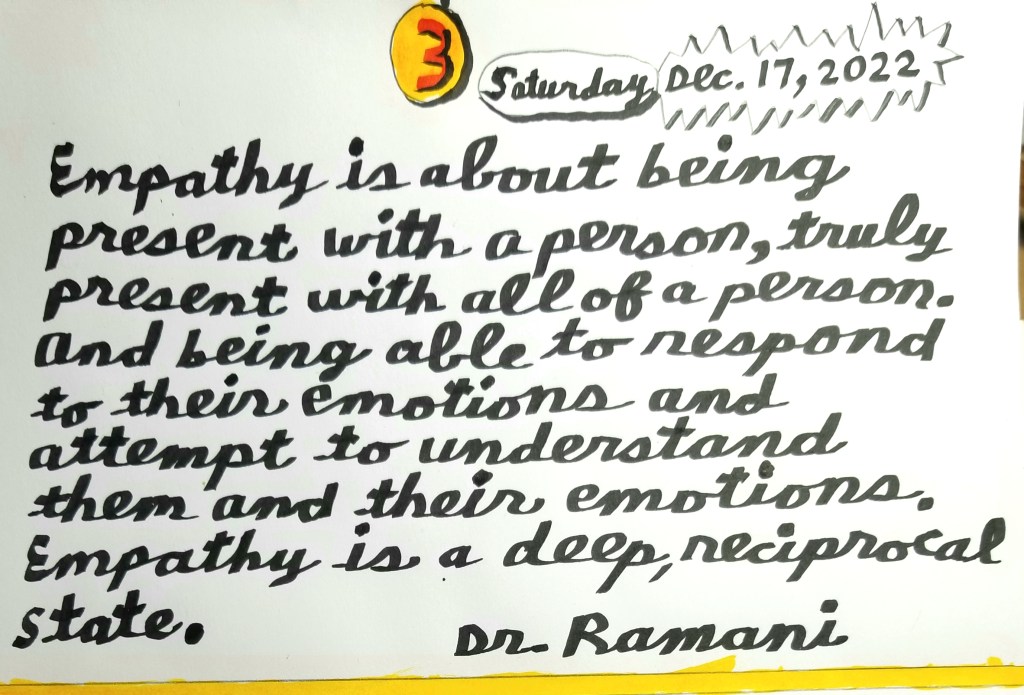Empathy is about being present with a person, truly present with all of a person. And being able to respond to their emotions and attempt to understand them and their emotions… Empathy is a deep, reciprocal state.
