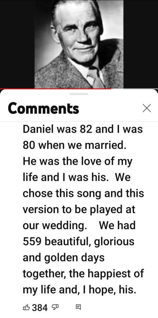I was listening to the original Walter Huston recording of Kurt Weill’s haunting and beautiful September Song (lyrics by Maxwell Anderson), a melody he wrote for Huston’s limited vocal range. Houston’s version is indeed a beauty. So was this comment below the YouTube video, from seven years back.