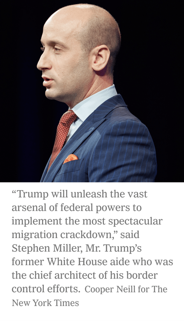 “Any activists who doubt President Trump’s resolve in the slightest are making a drastic error: Trump will unleash the vast arsenal of federal powers to implement the most spectacular migration crackdown,” Mr. Miller said, adding, “The immigration legal activists won’t know what’s happening.”