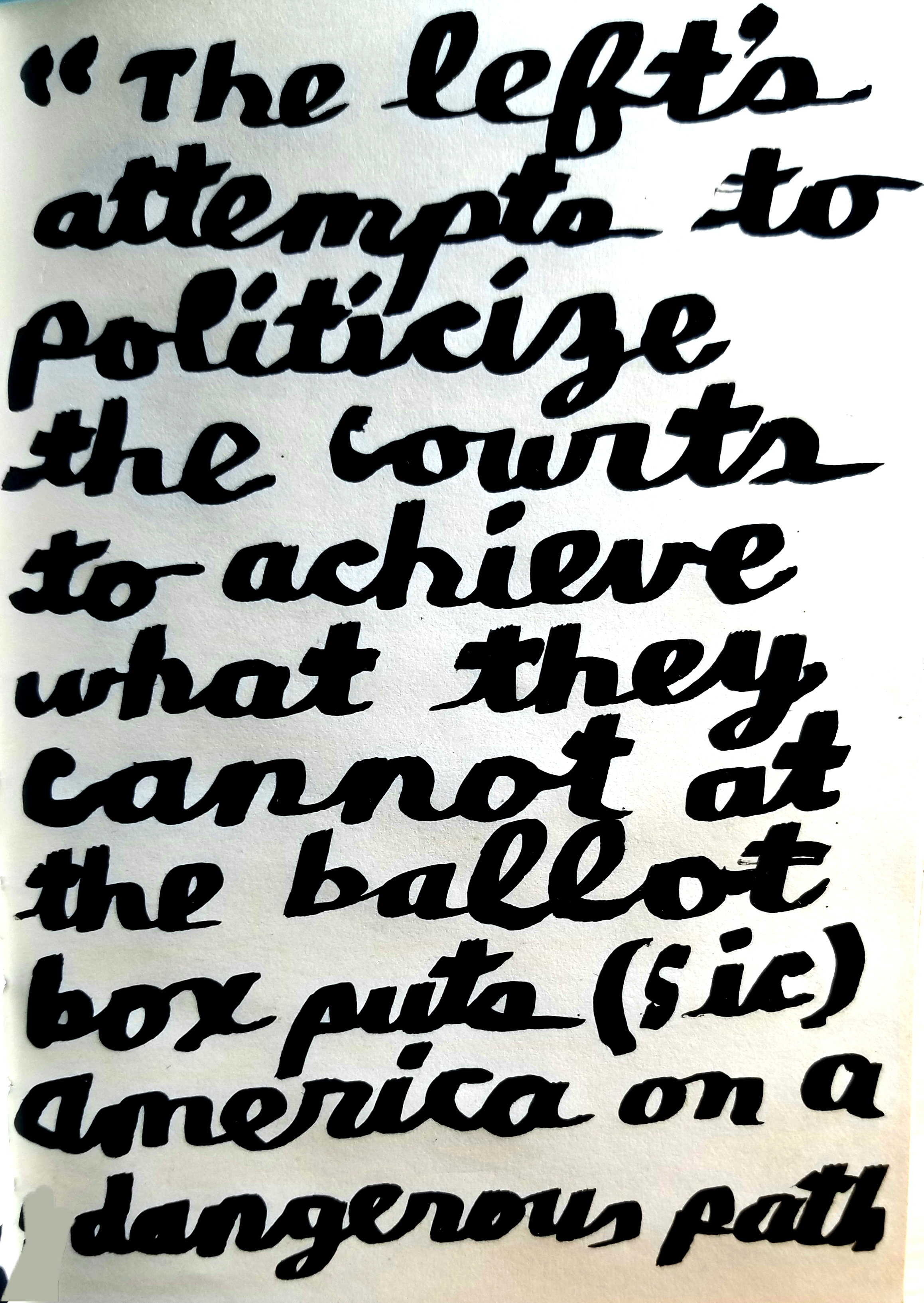 Doing the math we realize that the 9-0 judicial overreach (to once again favor a Republican, in this case also a Nazi) hung by one vote, that of Black Klansman and corrupt disciple of Antonin Scalia (being on the Supreme Court places me above ethics, you contemptible fucks), the billionaire-funded husband of Ginni, a powerful far-right player in Trump’s insurrection.