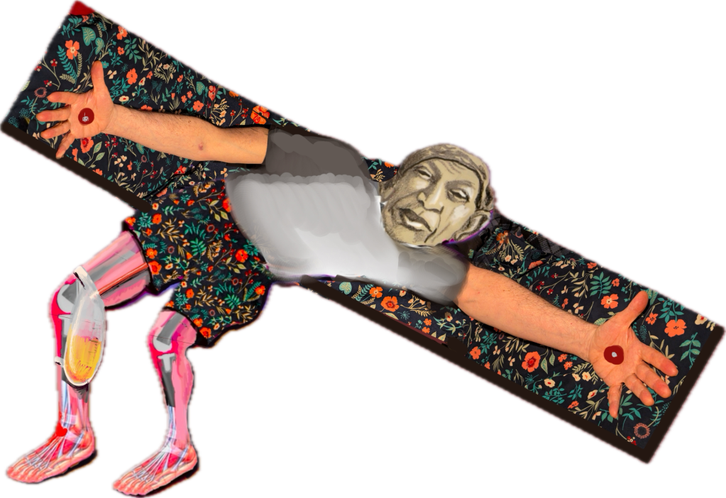 What do I know? The best I can do is something like this self-pitying self portrait as a partially crucified Picasso with pissbag and stylish, crucifix-coordinated shorts.