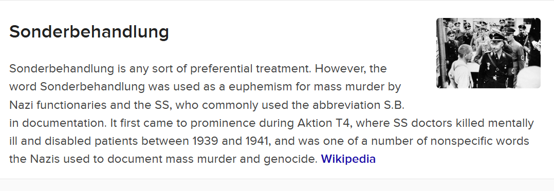 Charles Koch, fossil fuel baron and America’s most successful and influential living Nazi/Libertarian, has a favorite think tank, The Institute for Humane Studies. You can imagine how humane those studies must be if second generation Nazi Charles Koch loves them. The name of that outfit’s got to be up there with Arbeit Macht Frei for cynically “puckish” repurposing of language. That was a Nazi specialty, coming up with comically misleading names for hideous things. They even had a word for their creative designations to hide their actual purposes, sprachregelung. This refers to strict rules for language to be used about sensitive subjects. References to Jews on cattle cars heading to death camps in the East — sonderbehandlung [1] “special handling”, kind of darkly funny, to Nazis, anyway.