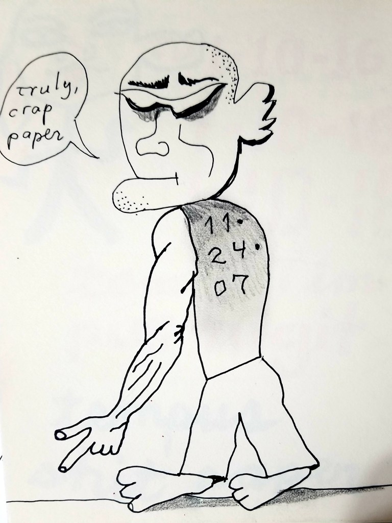 That paper really was shit, no other drawings in the pad, but I’m glad I drew this guy.