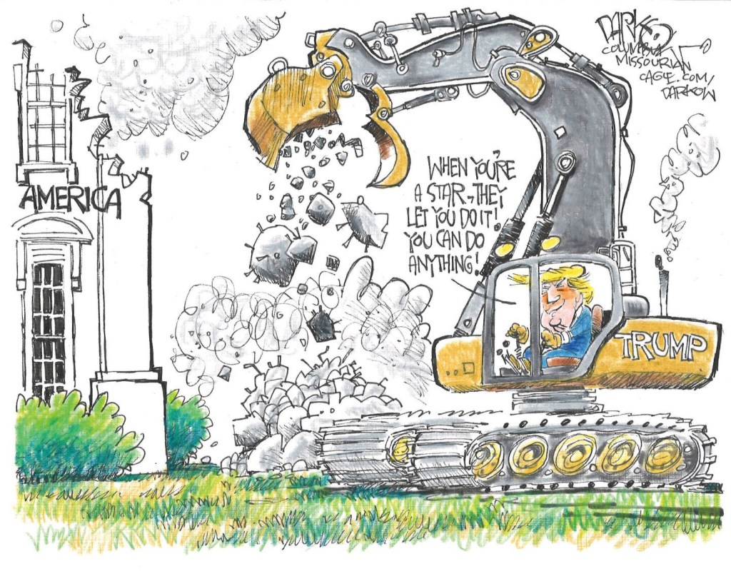 There are several compelling reasons, including enabling President Project 2025 to make unilateral, “plenary” decisions on everything in government (illegal demolition breaking a promise, another mass firing spree, $40,000,000,000 to his fascist buddy in Argentina, $172,000,000 for Kristi Noem’s two private jets, $250,000,000 for the Marie Antoinette Ballroom, $230,000,000 for him, restitution for the Biden witch hunts), since he alone is up and running, having ordered MAGA Mike to shut everything down and keep lying that the Democrat (sic) party is to blame. Trump’s criminal behavior can’t be questioned (see 6-3 Trump v. US), not the destruction of the east wing of the White House, not the international war crime of murdering now at least 34 unarmed noncombatants he has designated narco-terrorists, also not the release, pardon and hiring of countless heavily armed January 6th rioters, in masks, employed by ICE to act as Trump’s lawless shock troops in American cities.