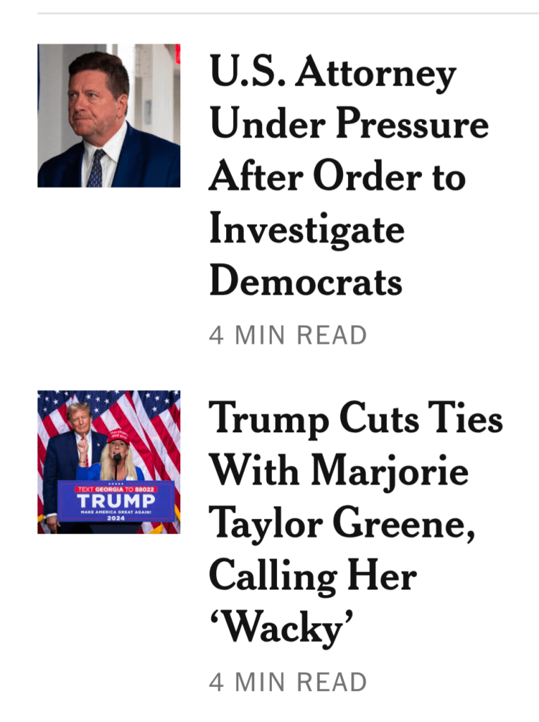 Wow. Check out what the NY Times published on the eve of the deadline for the DOJ [partially, conditionally, grudgingly] complying with the Epstein Files Transparency Act, unanimously passed by Congress (but for one diehard MAGA representative) and signed into law, thirty days ago, by Trump himself: