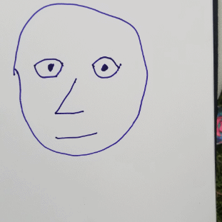 I showed a friend’s super-talented granddaughter how to do simple stop frame animation the other day. Under the mounted camera I drew a simple face and quickly showed her the principle of making animation out of two or more carefully registered drawings (or in this case, two stages of the same drawing).