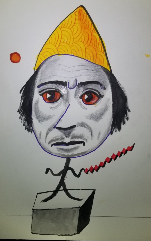 Shoot, maybe that’s why I’m not drawing these days. More than in anything else I do, my subconscious emerges most freely in drawings. I can play a stiff version of a beautiful tune on the piano, it’s not great music, but it doesn’t have even a hint of the terror in the face above. Perhaps I’ll try a bit of calligraphy later.
