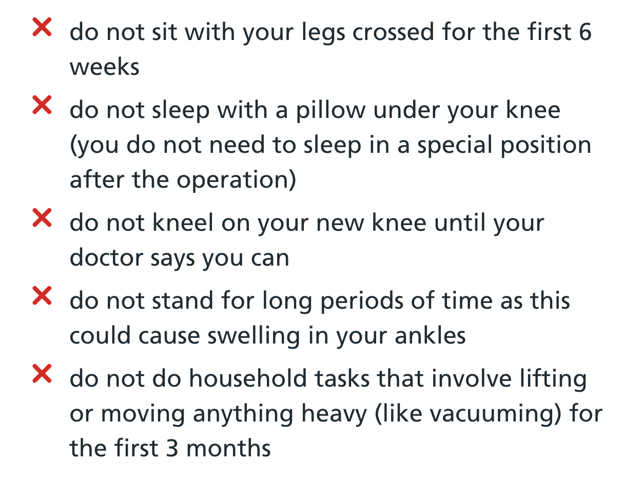 He then had me lie on my back and created a support with three pillows, one expertly folded under my ankle. The underside of my knee was not touching the pillows. The position was to reduce the swelling and allow the fluids to return to the rest of my body, aided by gravity. “You must sleep in this position,” he instructed me, warning me that trying to sleep on my side, as I always have, would result in the leg being bent in the fetal position, which was the worst possible way I could sleep after knee reconstruction surgery. Then he said goodbye for the weekend, arranging to see me again on Monday.