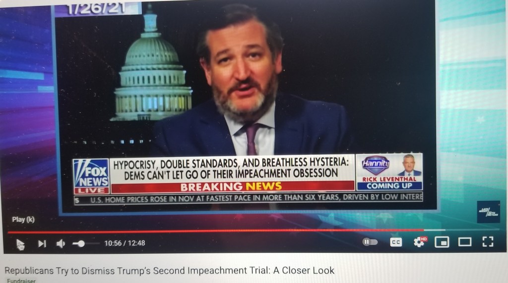 “They hate Donald J. Trump and they are engaging in an act that I think is petty, I think it is retribution, I think it is vindictive, and I think it’s a waste of time. And so, to coin a phrase, I think it’s time to move on.” — Lyin’ Ted Cruz, dismissing the whole thing as more ugly, left-wing bullshit.
