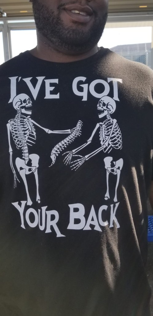 These two subway riders had on great masks, funny, macabre, slightly disturbing. I’d given one of them, the Barry Goldwater lookalike who made eye contact with me, a thumbs up and called across to him “great mask!” He nodded, with that same fixed, mad, clownish smile plastered across the lower part of his face.