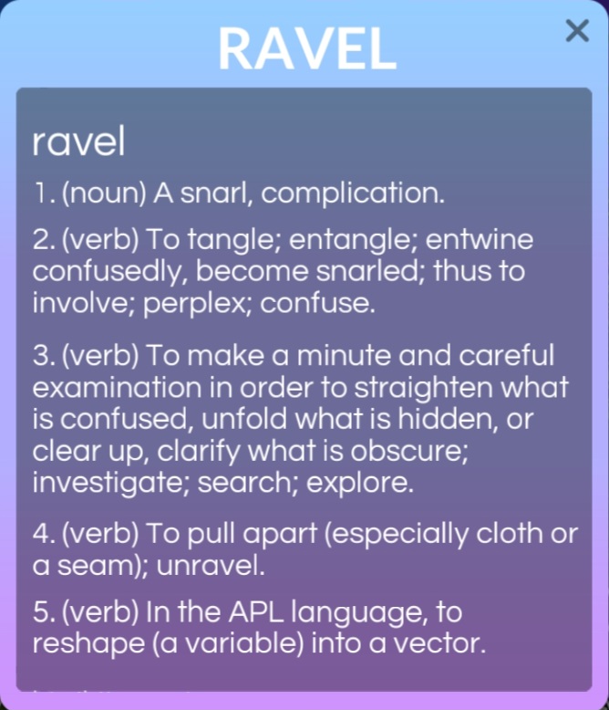 I love the gnarly contradictions of the word itself. It means to perplex, confuse, make impossibly complicated. It also means to carefully analyze and untangle an impossibly complicated situation. In one word, the story of my life!