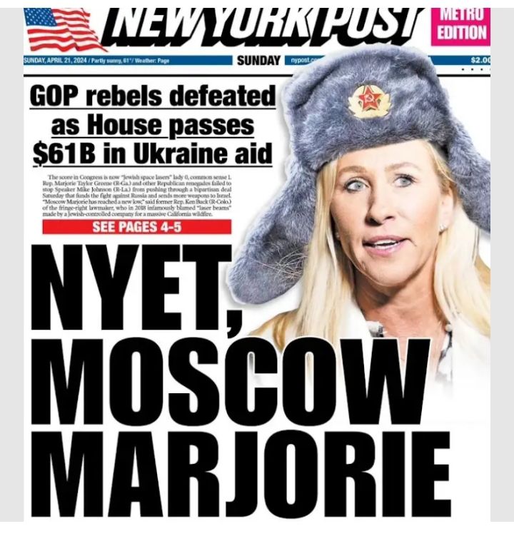 Trump instructed his loyal, Christ loving puppet MAGA Mike to hold up aid to Ukraine while Putin makes advance after advance in his war of aggression against Ukraine. MAGA Mike held up this aid for many months, along with aid to Gaza, Israel and Taiwan, until Democrats promised to shield him from removal as Speaker. Today MAGA Mike lied about it, of course, (doing it this way, he said, was the only way to get Democrats to support aid to Israel, among lies) because, presumably, that’s what Christ would have done.
